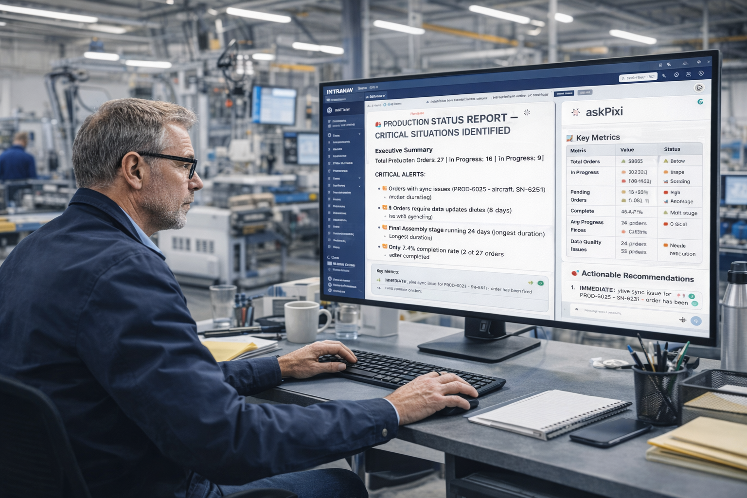 Where it makes sense, askPixi can also initiate measures after human approval. In this way, shop floor data is turned into effective operational decisions.