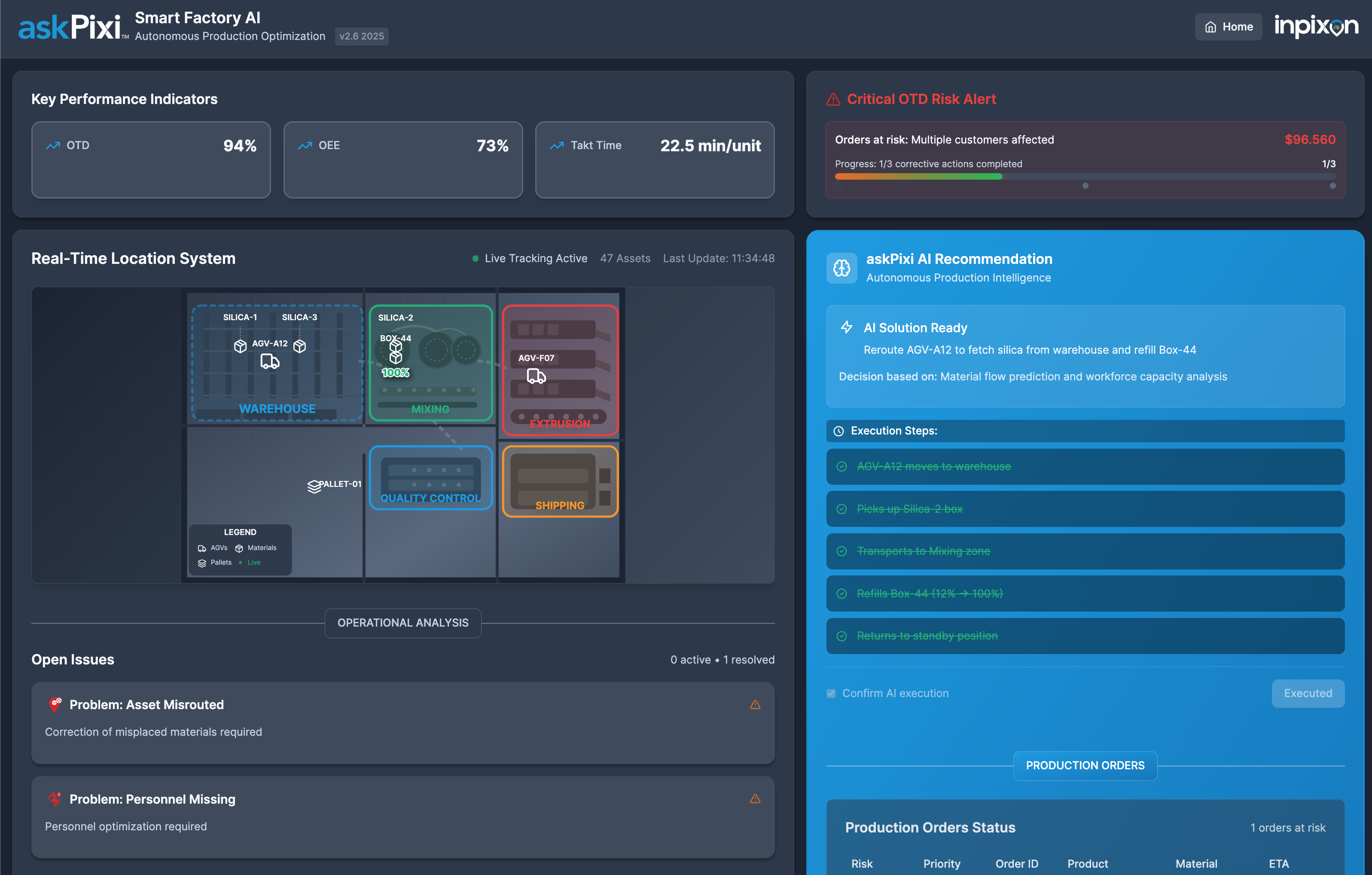 • Proactive Alerts: Immediate warnings for restricted zones, missed steps, near-collisions and process interruptions.