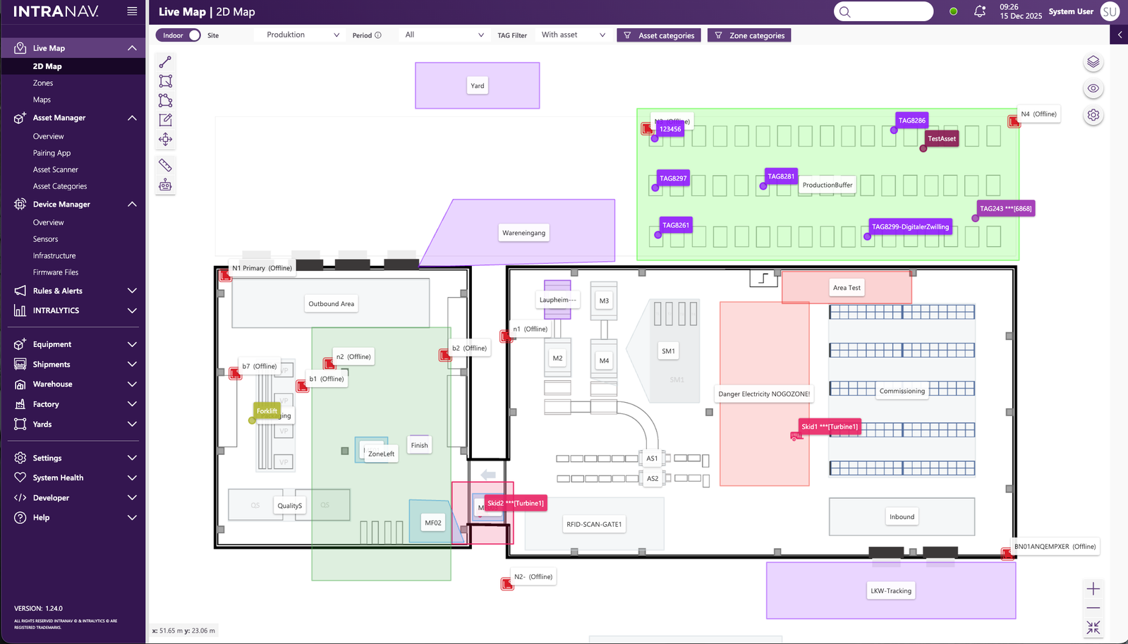 • Live Tracking: Monitor assets, vehicles, WIP, and people across the facility.